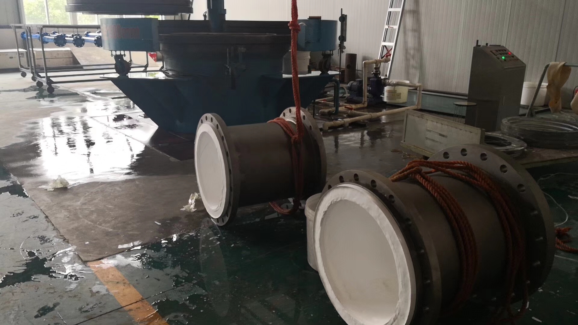 生產聚四氟乙烯管、襯氟鋼管和襯四氟管件、鋼襯ETFE(F40)塔節、襯四氟容器、襯四氟設備,四氟噴涂管等。擁有多臺不同規格的熱滾襯ETFE(F40)雙軸線旋轉成型燒結爐,ETFE(F40)材料對塔設備、反應器、反應釜、罐類容器、管道管件、泵體及各種形狀復雜的零件進行襯氟加工。ETFE(F40)和鋼體有很好的附著力,襯氟設備耐真空、耐負壓。 使用優質原料生產聚四氟乙烯管規格DN15~600,品種多,規格全。可接受委托試制,特殊規格或長度可根據客戶需要制造模具生產。 本公司生產的襯氟鋼管和襯氟管件,使用高質量的聚四氟乙烯管作襯里,采用緊襯工藝;襯氟管件,襯氟彎頭,襯氟三通,襯氟異徑管等,采用模壓一次成形工藝。工作壓力為-0.077MPa ~1.6MPa,可在-60℃~ 180℃正常使用。